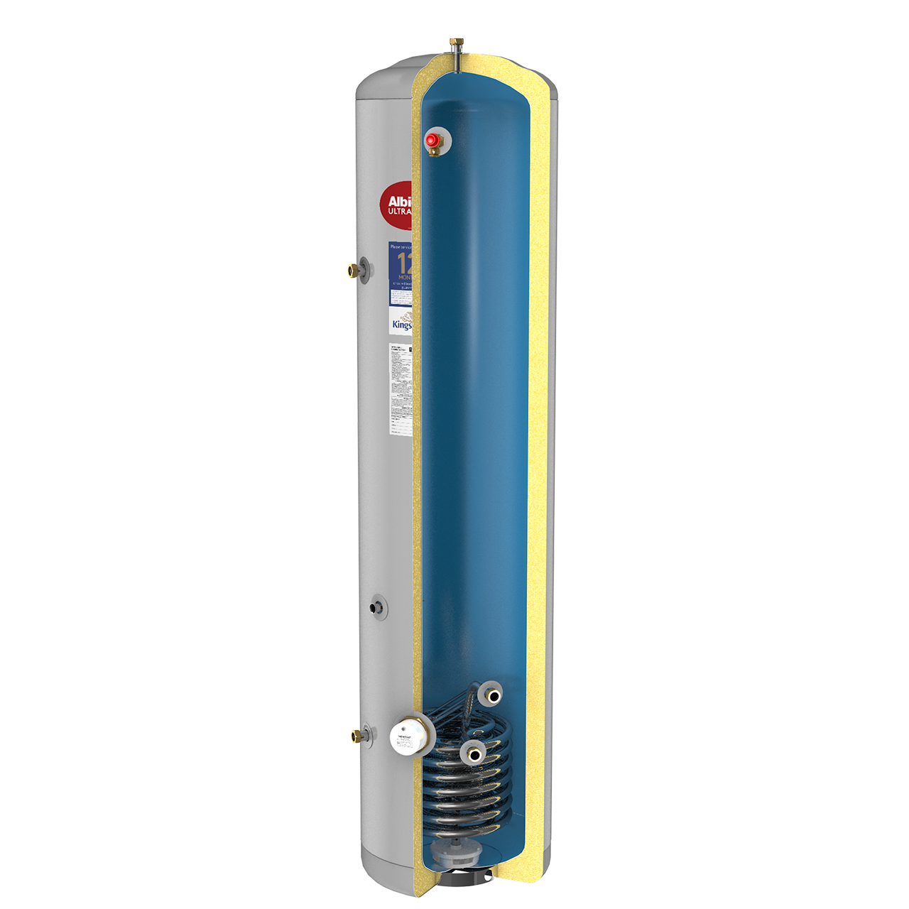 Ultrasteel Indirect Slimline with one of the smallest footprints from the unvented cylinders available on the market today, has been designed to heat up quickly via the coil-in-coil heat exchanger connected to a traditional gas, oil or electric boiler. This indirect unvented hot water storage cylinder is the ideal choice for those extra ‘tight’ installations where space is at a premium and a small footprint is essential.