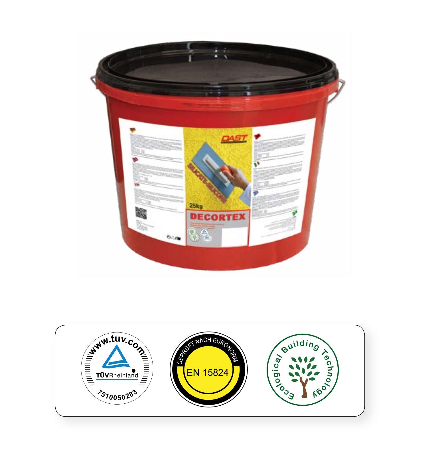 Decorative silanated and ready to use coat, that serves for the treatment of facades and indoor surfaces. It is an ecologically tested product. Manufactured based on HTT technology (Hörman Transpirant Technology), it allows wall airing and mold prevention. Thanks to the new formula with synthetic fibers and special additives in its content, this product does not allow cracks and impurities to unify with it, thus self-cleansing easily.