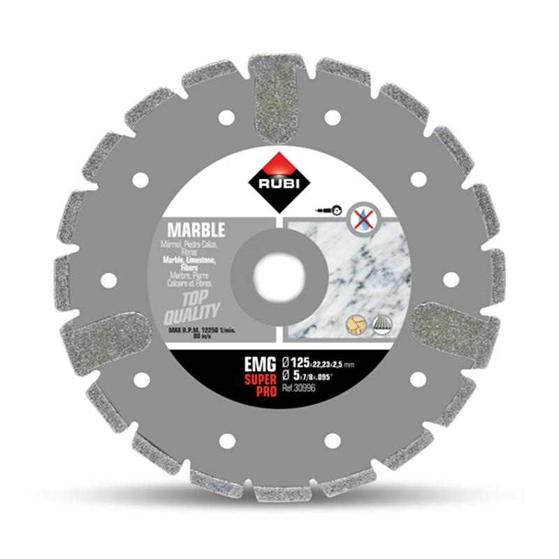 Overall, this is the blade that all building professionals need for cutting materials that pose a high risk of fracture, especially marble and fibreglass. Using electroplated diamond blades, such as the RUBI EMG, reduces vibrations during dry cutting with a grinder.